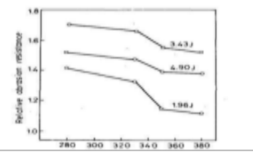 不同沖擊能量作用下貝氏體組織耐磨性與等溫溫度的關系